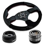 | ✚✚✚ NRG-SRK-181H+012R-S+200GM, NRG Innovations 12.5" 320mm Black Leather Red Stitch Suede Grip Racing Steering Wheel Combo with 6 Hole Short Hub Adapter with Gen 2.0 Gun Metal Quick Release Kit SRK-181H NRG Quick Release features many options that conventional ball-locking quick release system do not. It is specially engineered with raised sections to prevent the scratching and stretching of the hub while a self locking feature adds increased safety and functionality. Features racing styled for added style and look. Each unit is made from the highest quality aircraft grade aluminum and is anodized for maximum durability and finish.